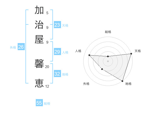 加治屋 馨恵さんの天格は23画の5点!