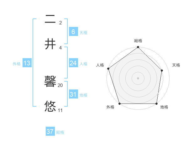 二井 馨悠さんを姓名の画数から五運を鑑定