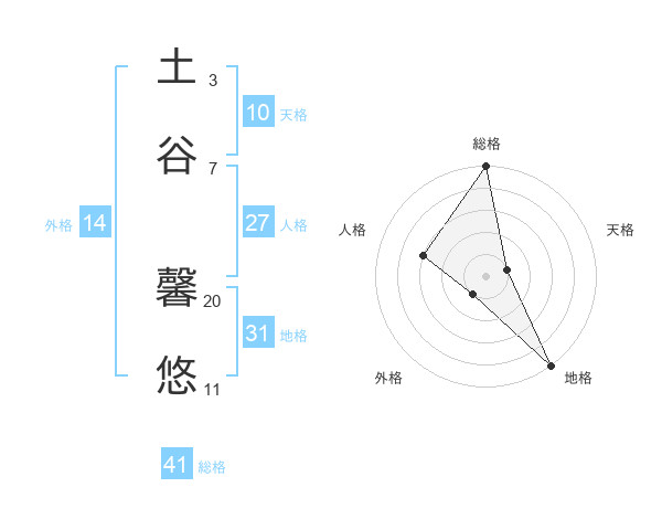 土谷 馨悠さんを姓名の画数から五運を鑑定