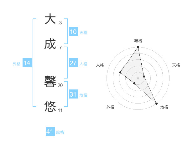 大成 馨悠さんを姓名の画数から五運を鑑定