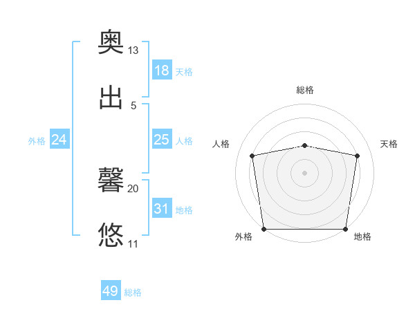 奥出 馨悠さんの総格は49画の2点!