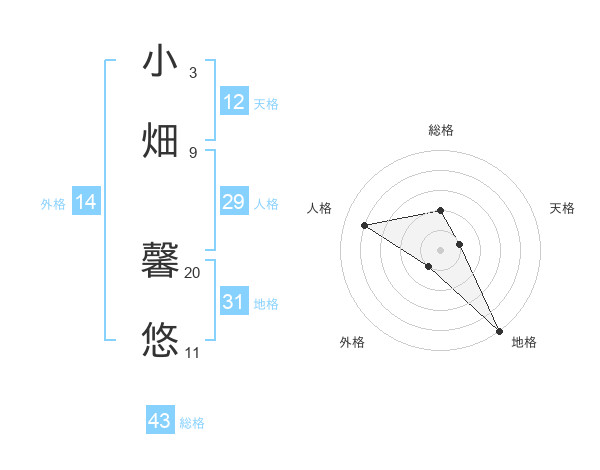 小畑 馨悠さんの天格は12画の1点!