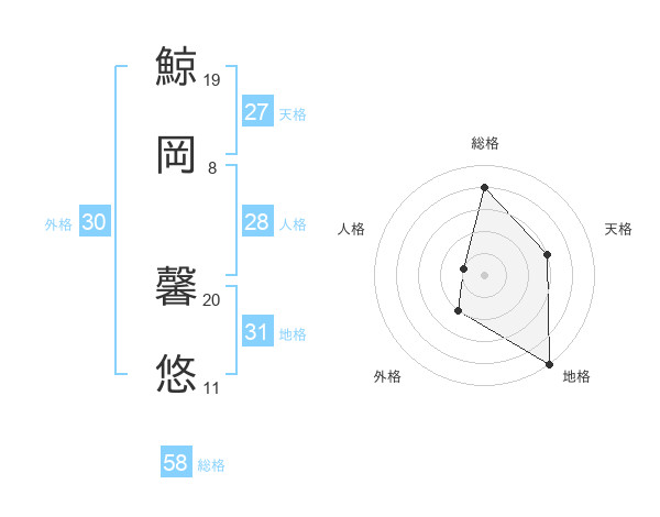 鯨岡 馨悠さんの総格は58画の4点!