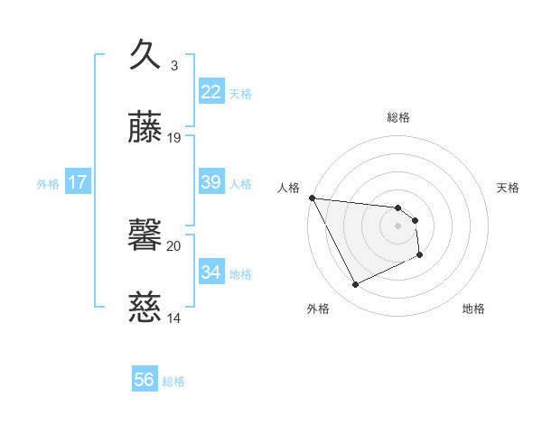 久藤 馨慈さんの総格は56画の1点!