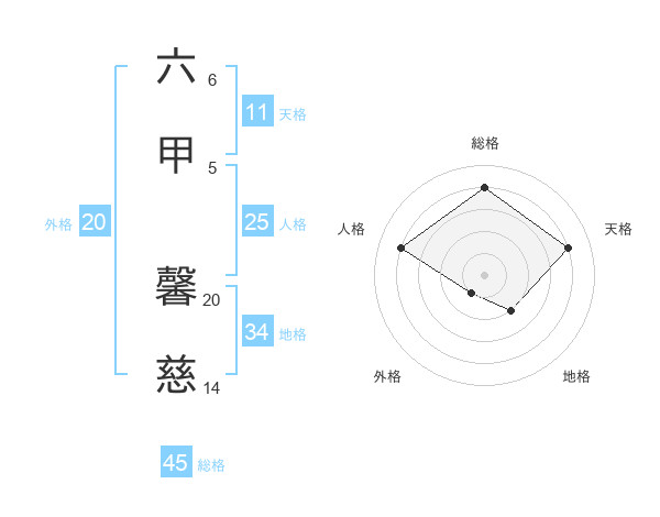 六甲 馨慈さんを姓名の画数から五運を鑑定