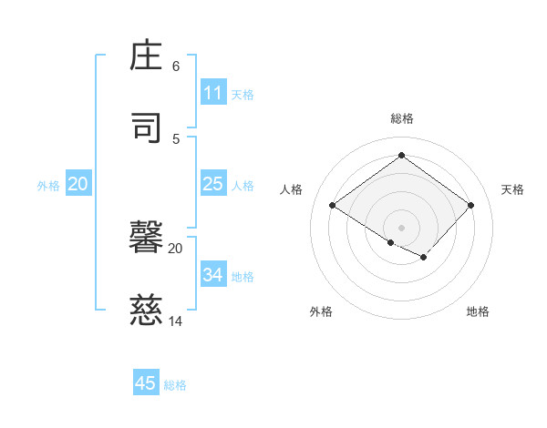 庄司 馨慈さんを姓名の画数から五運を鑑定