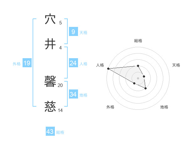 穴井 馨慈さんを姓名の画数から五運を鑑定