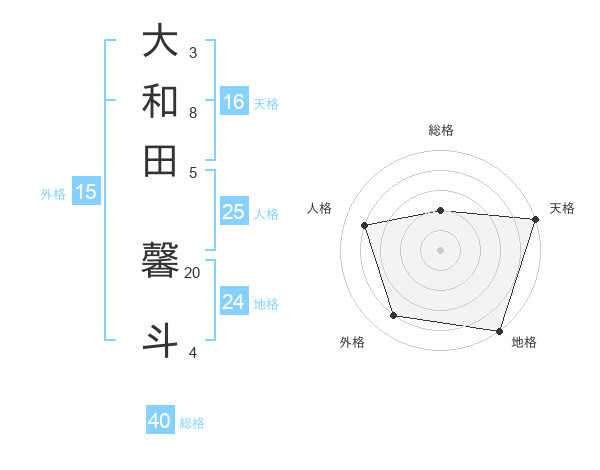 大和田 馨斗さんを姓名の画数から五運を鑑定