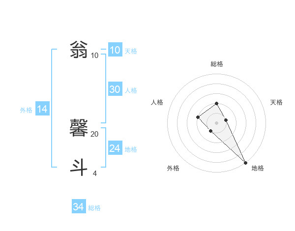 翁 馨斗さんを姓名の画数から五運を鑑定
