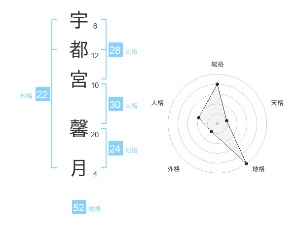 宇都宮 馨月さんを姓名の画数から五運を鑑定