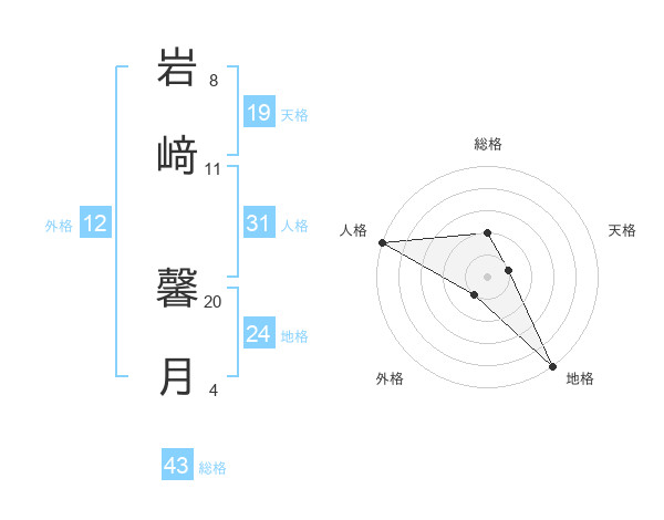岩﨑 馨月さんを姓名の画数から五運を鑑定