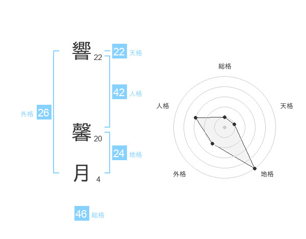 響 馨月さんの外格は26画の2点!