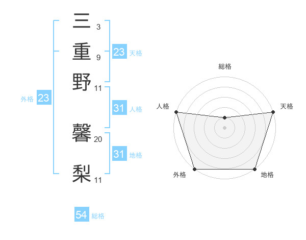 三重野 馨梨さんの外格は23画の5点!