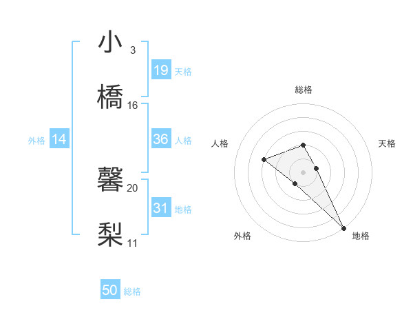小橋 馨梨さんを姓名の画数から五運を鑑定