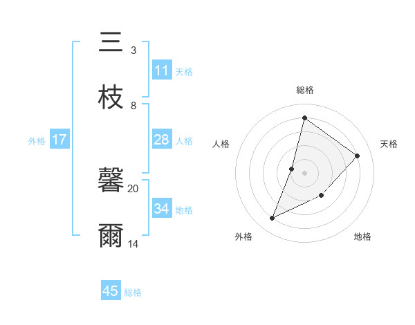 三枝 馨爾さんを姓名の画数から五運を鑑定