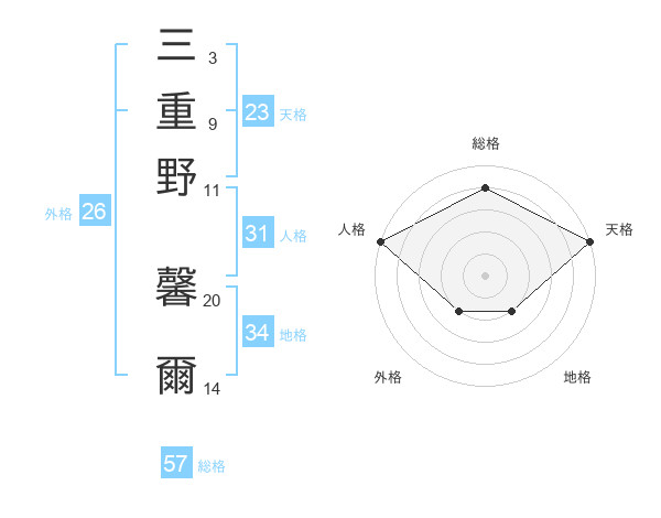 三重野 馨爾さんを姓名の画数から五運を鑑定