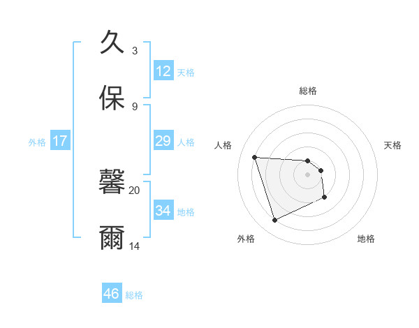 久保 馨爾さんの人格は29画の4点!