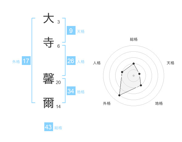 大寺 馨爾さんの総格は43画の2点!