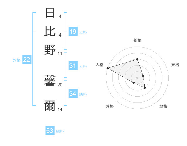 日比野 馨爾さんを姓名の画数から五運を鑑定