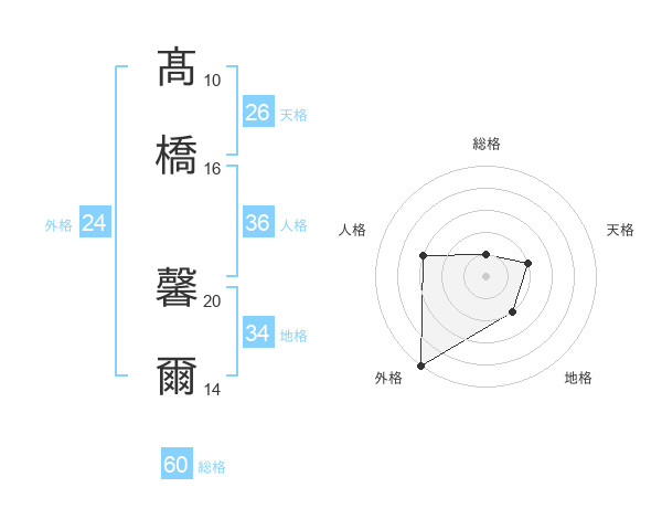 髙橋 馨爾さんを姓名の画数から五運を鑑定