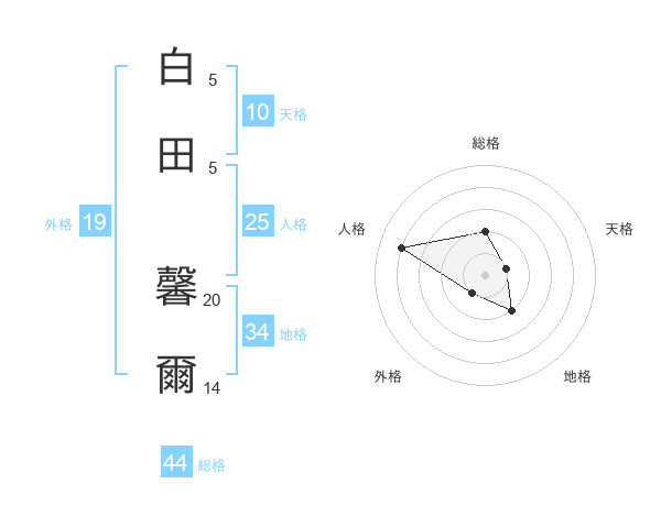 白田 馨爾さんの総格は44画の2点!