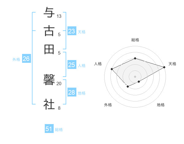 与古田 馨社さんを姓名の画数から五運を鑑定
