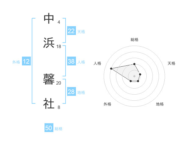 中浜 馨社さんの総格は50画の2点!