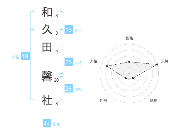 和久田 馨社さんを姓名の画数から五運を鑑定