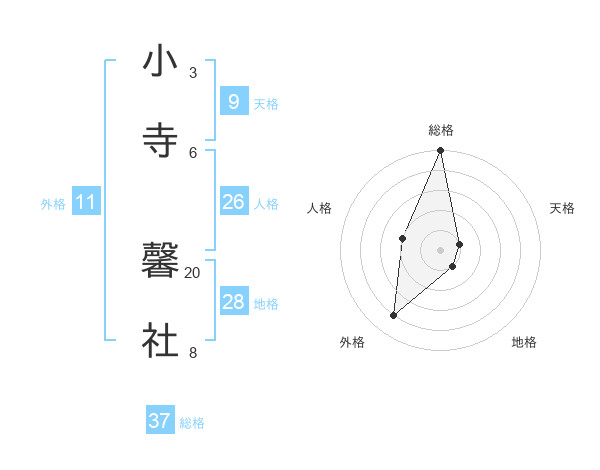小寺 馨社さんを姓名の画数から五運を鑑定