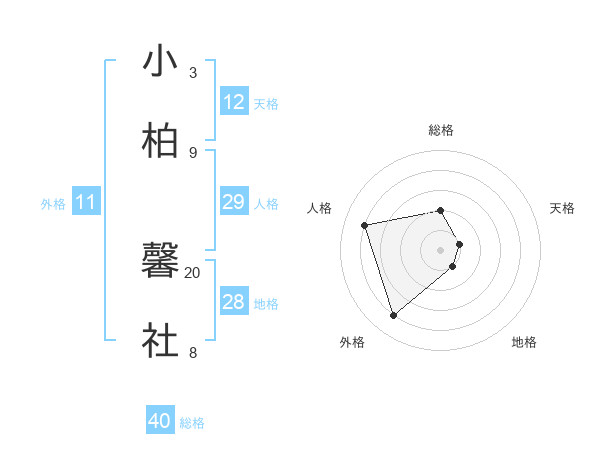 小柏 馨社さんを姓名の画数から五運を鑑定