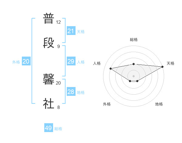 普段 馨社さんの総格は49画の2点!