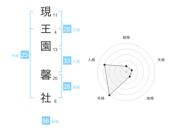 現王園 馨社さんを姓名の画数から五運を鑑定
