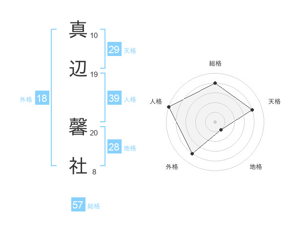 真辺 馨社さんを姓名の画数から五運を鑑定