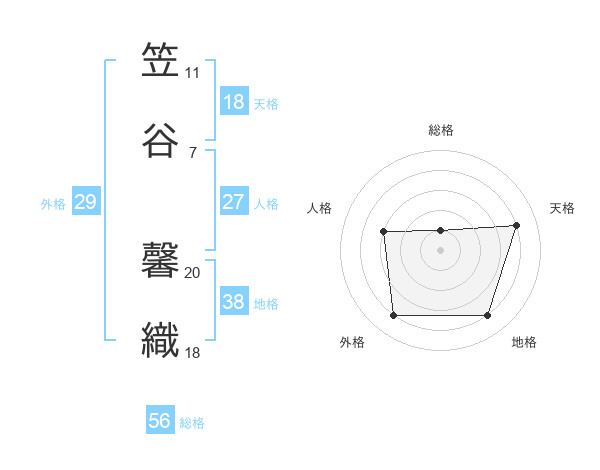 笠谷 馨織さんの総格は56画の1点!