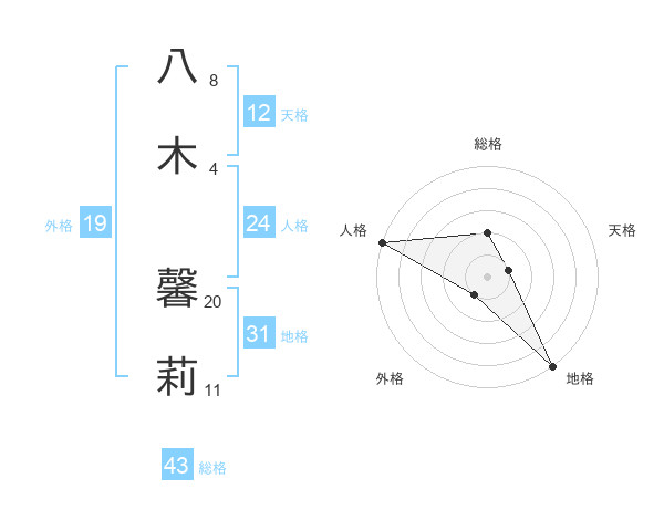 八木 馨莉さんの総格は43画の2点!