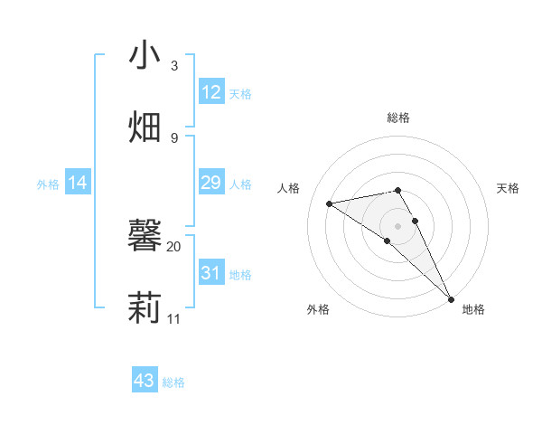 小畑 馨莉さんを姓名の画数から五運を鑑定