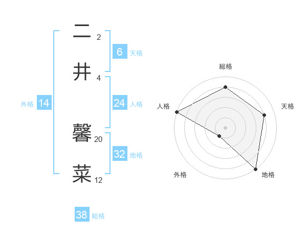 二井 馨菜さんを姓名の画数から五運を鑑定