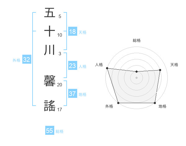 五十川 馨謠さんを姓名の画数から五運を鑑定