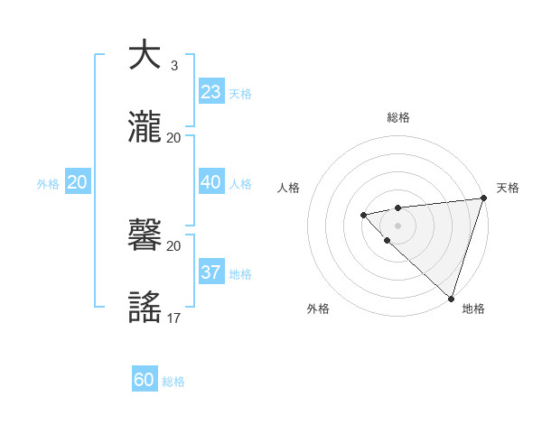 大瀧 馨謠さんを姓名の画数から五運を鑑定
