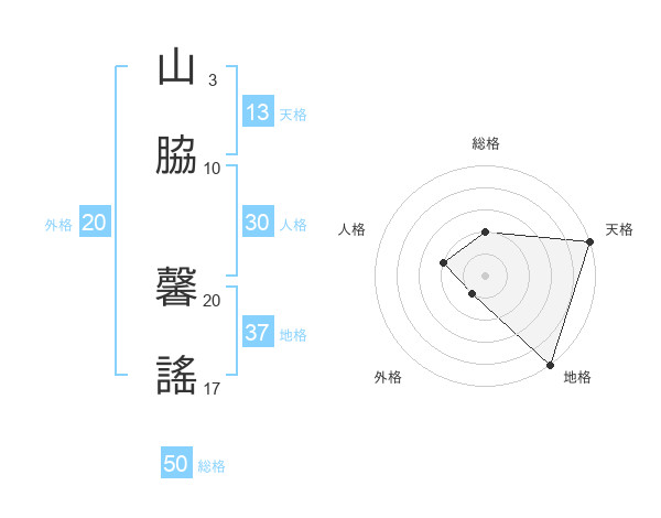 山脇 馨謠さんを姓名の画数から五運を鑑定