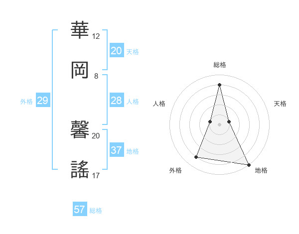 華岡 馨謠さんを姓名の画数から五運を鑑定
