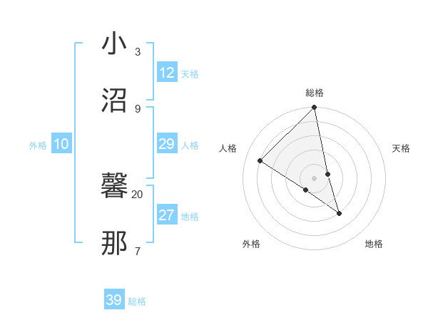 小沼 馨那さんの総格は39画の5点!