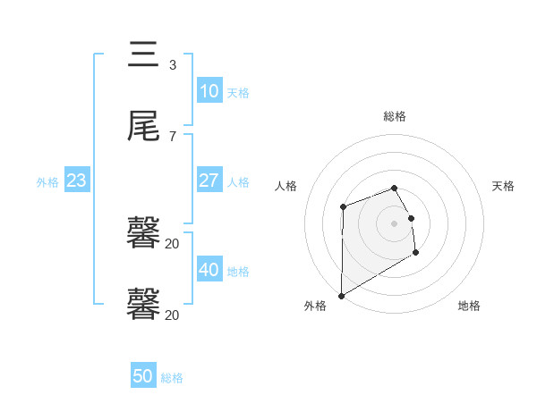 三尾 馨馨さんを姓名の画数から五運を鑑定