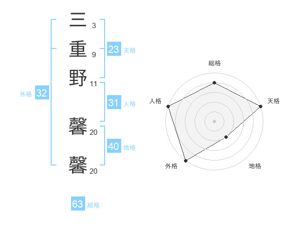 三重野 馨馨さんを姓名の画数から五運を鑑定