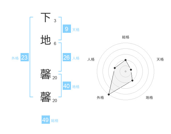 下地 馨馨さんを姓名の画数から五運を鑑定