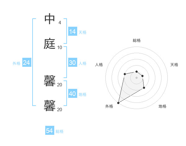 中庭 馨馨さんの総格は54画の1点!