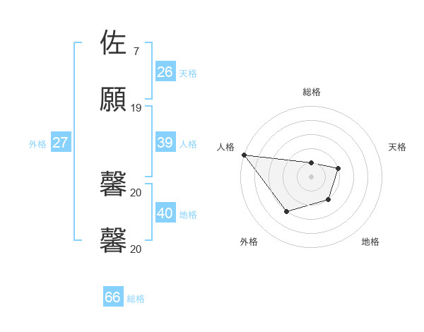 佐願 馨馨さんを姓名の画数から五運を鑑定