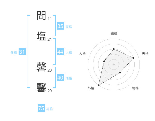 問塩 馨馨さんを姓名の画数から五運を鑑定