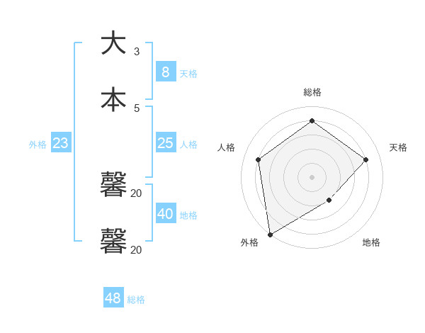 大本 馨馨さんの天格は8画の4点!