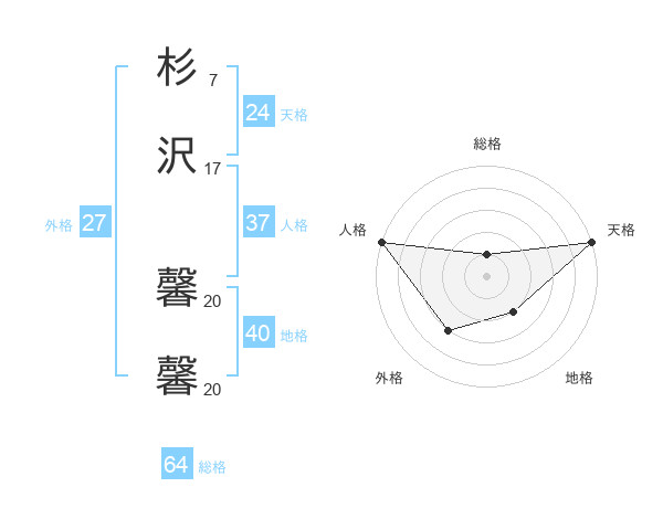 杉沢 馨馨さんを姓名の画数から五運を鑑定
